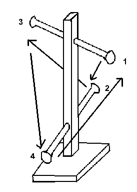 A niddy-noddy (see Figure 10) is essentially a pair of sticks set at right-angles to each other near the top and bottom of a vertical shaft of wood. The wool is wound from top front to bottom right to top back to bottom left and back up to top front. Why not just have a pair of pegs about a metre apart on piece of wood sitting on the table top? Because it would mean considerably more bending and stretching for the woman winding the skein, whereas with a niddy-noddy she could produce a nice long skein while keeping her arms essentially in front of her body. Having wound skeins on chair backs, I can assure you that even moving only 55 cm or so side to side becomes work quite quickly. Does this matter? I can spin enough wool for a 100-metre skein in two afternoons. Now do this for at least half your year, if you wish to clothe your family. Yes, it matters.