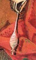 The third thing to note is the complete absence of a thread looped round the spindle end below the whorl and carrying back up to the top, as in modern technique (see Figure 5). In the middle picture, where the spinner is winding thread onto the spindle, this would of course not appear, but if it was a common practice it should be shown in the two rightmost pictures, both of which are superior paintings showing great, and highly accurate, detail. I think we can safely assume that if it had been common to loop the thread round the spindle under the whorl, Breughel would have observed and painted it. In modern spinning, the bottom loop provides tension on the thread so that the top half-hitch does not slip out of the notch and off the top of the spindle. In all the spinning miniatures I have looked at, the thread seems to just end at the top of the spindle; I think this is so because it is lying hard against the spindle, with the tension to hold it in place supplied by friction against the wound thread. If a tight turn were taken around the existing thread below the bulge before the thread was pulled up for the half-hitch around the top of the spindle, this would significantly aid it to stay in place.