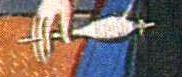 Your first thread will not be a miracle of evenness, to say the least. You will have thin bits and thickish lumps, which are called slubs and are actually considered desirable in novelty yarns for knitting! You will be surprised, however, at how quickly the evenness of your thread improves, and you will probably find that you are naturally spinning finer thread as well. Most thread spun on the rock was woven into cloth rather than plied for knitting, although knitting certainly existed in period (there are several lovely miniatures of knitting madonnas). If you wish to knit your spun wool, you can always ply several threads together (how to do this is described later); this will actually give a stronger and more even yarn than one thickly-spun thread.