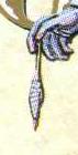 The final refinement was a notch in the spindle near the top to provide a secure anchorage for the thread (in modern spindles, this is often replaced by a little cup hook screwed vertically into the top of the spindle) . The notch is not essential, as thread knotted in a half-hitch round the spindle near the top will stay more-or-less in place under tension. It does, however, lessen the frequency of the thread slipping off and the spindle falling to the ground. As yet I have no idea when notches were first introduced; I have not found any illustration of one, and they may well not be period.